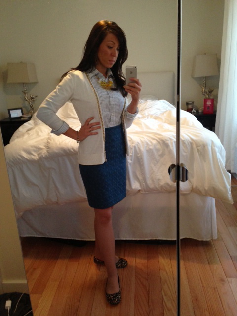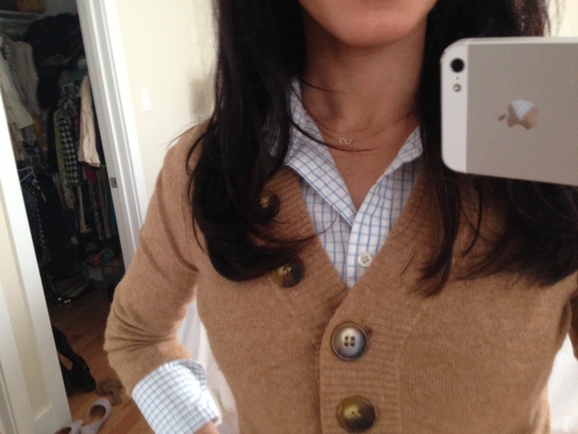 Light blue check button-down: J Crew via Greene Street Consignment