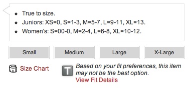 The one above is by Nordstrom, who awesomely offers their TrueSize feature. You put in sizes of other brands of clothes you like, and it will tell you which size you would need in whatever clothes you are looking at. Anyway, to rub salt in the wound, this is what came up when I clocked on the “Dream” T-Shirt: